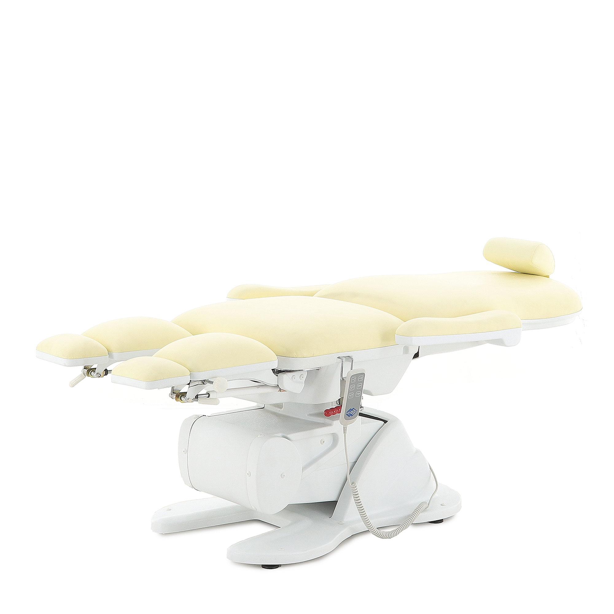 - Кресло имеет семь секций, которые можно регулировать по углу наклона и положению. Это позволит подобрать наиболее комфортную позу для конкретной процедуры.